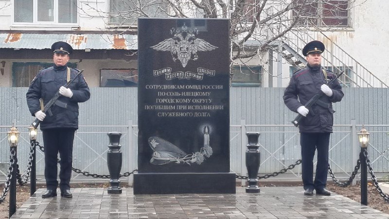 В Оренбургской области установили гранитный памятный знак сотрудникам ОМВД России по Соль-Илецкому городскому округу, погибшим при исполнении служебных обязанностей.