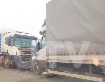 По словам очевидцев, один из грузовых автомобилей оказался на встречной полосе.