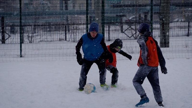 Прямо посреди зимы и снегопада видим картину, когда команда ребят гоняют мяч по мини-футбольному полю. С ними тренер. Накал игровых страстей такой, что профессионалы позавидуют. Это тренировочный процесс в спортивной школе. Ребята тренируются на новой площадке. Летом – здесь искусственное покрытие и освещение, все условия для игры. Зимой – также отличная площадка.