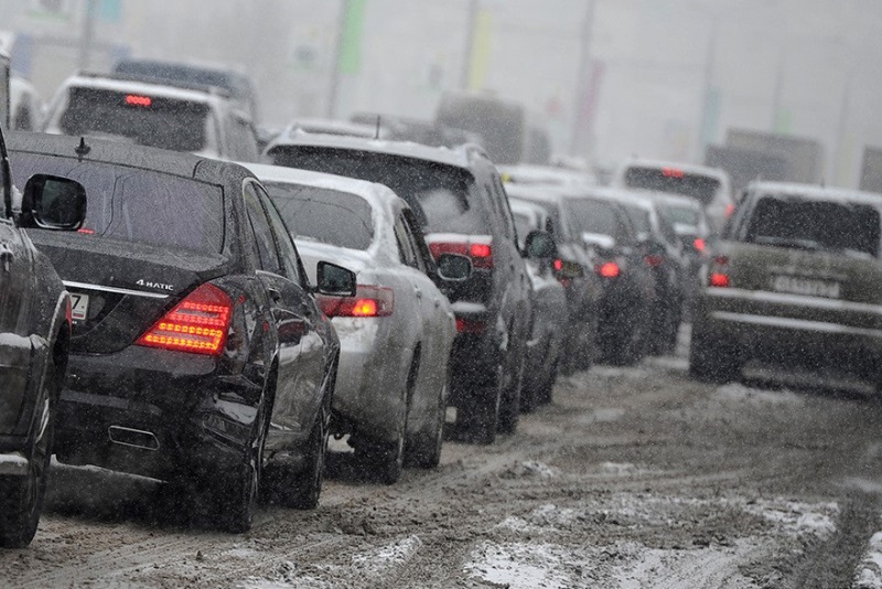 Серьезные пробки в час пик образовались на дорогах Оренбурга из-за непрекращающегося снегопада.