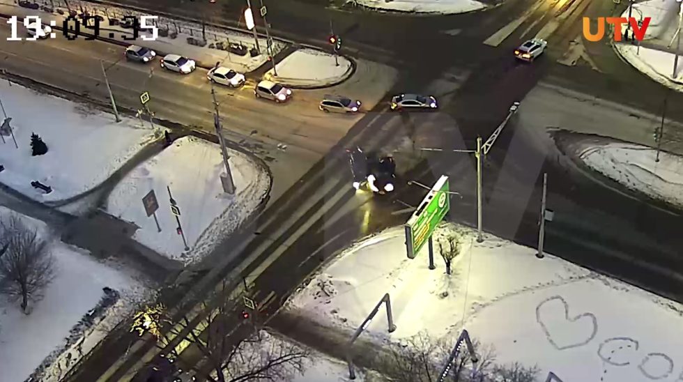 ДТП попало в объектив камеры видеонаблюдения Уфанет. На записи видно, как вечером 17 февраля на пересечении улицы Чкалова и проспекта Гагарина столкнулись два автомобиля.