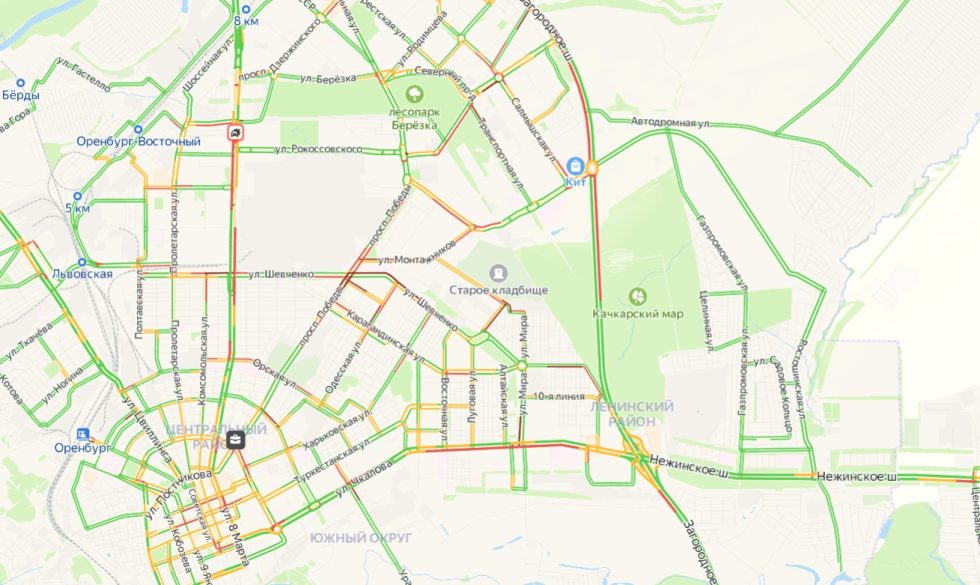 Самые существенные пробки — на проспекте Гагарина и на Загородном шоссе в районе кольца. Также проблемы наблюдаются на улице Шевченко.