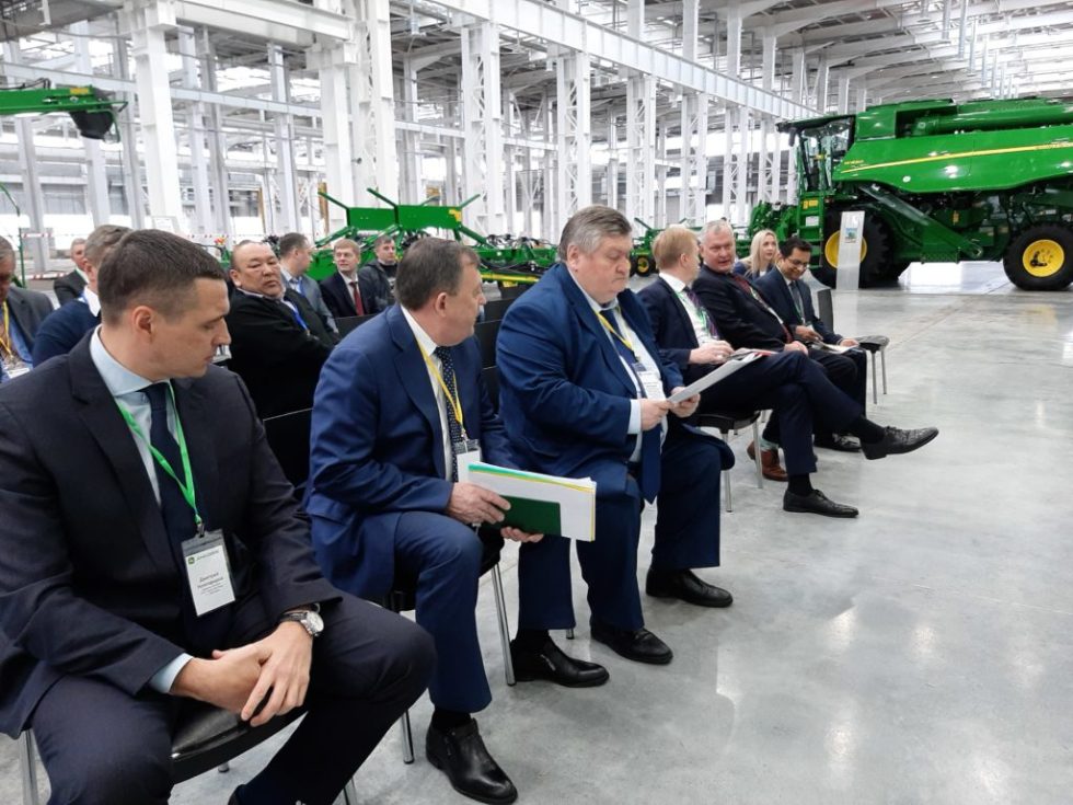 Встреча состоялась на производственных площадках John Deere в Оренбурге. Сейчас здесь выполняют лишь несколько операций – металлообработку, сварку, покраску и сборку техники. В следующем году рассчитывают наладить линию полного цикла выпуска тракторов и комбайнов.