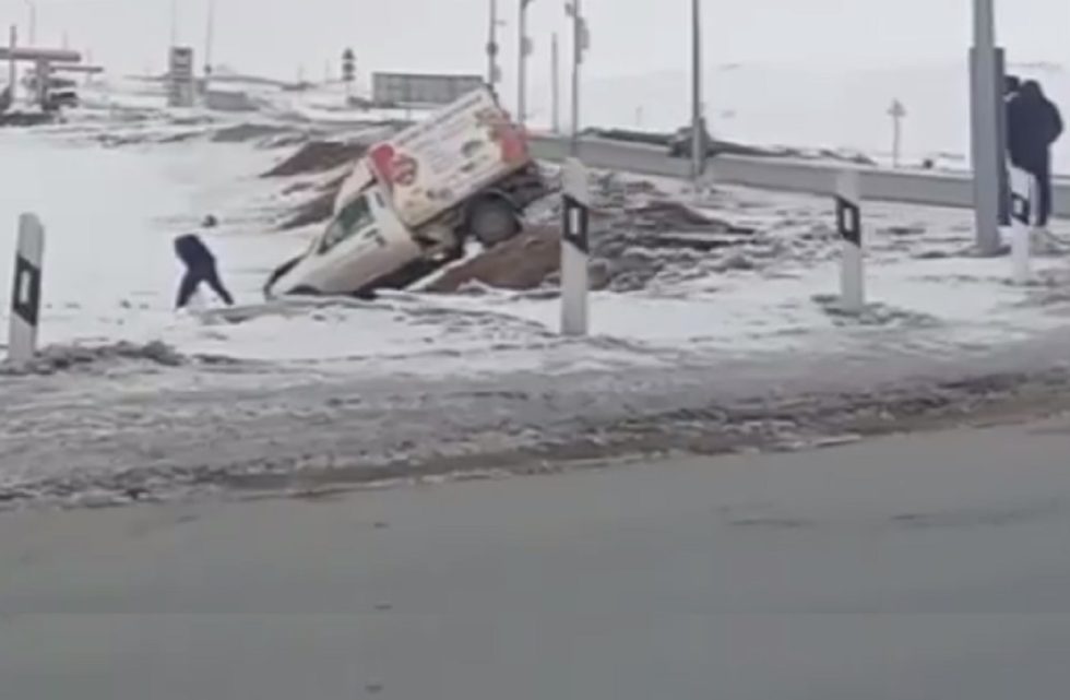 Под Оренбургом фургон вылетел в кювет. ДТП попало на видео, его сняли проезжавшие мимо водители.