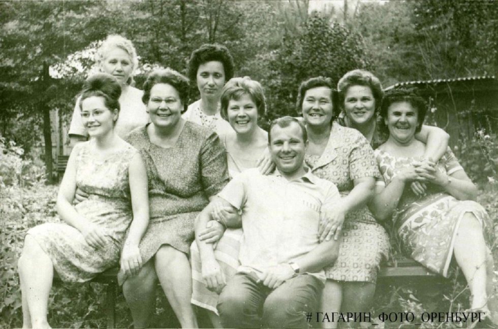 На фото: Летчик-космонавт, Герой Советского Союза Юрий Алексеевич Гагарин и его супруга Валентина Ивановна Гагарина (крайняя слева) на даче у первого секретаря Оренбургского обкома КПСС Александра Власовича Коваленко в Дубках (archive.orb.ru).