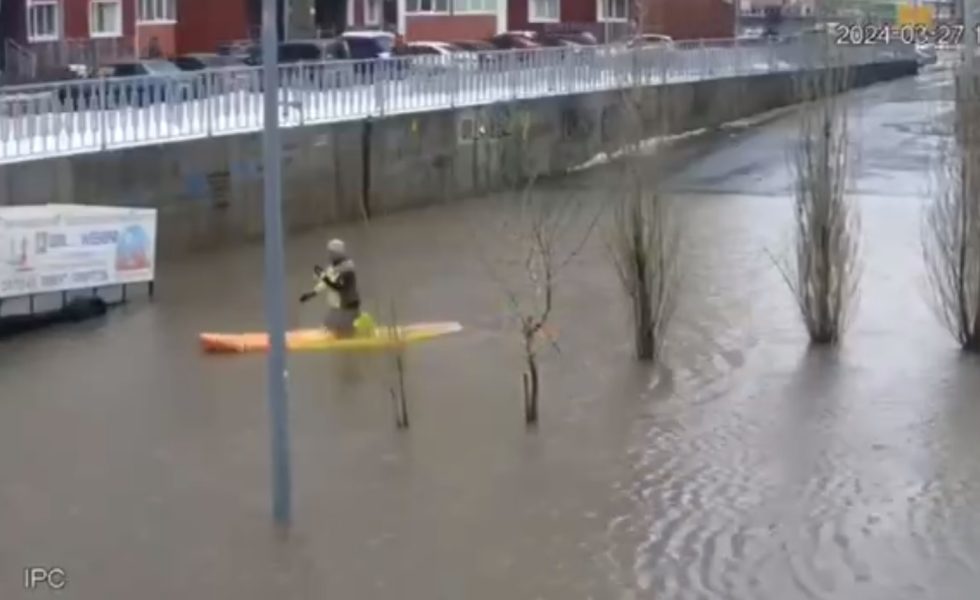 Инцидент произошел во дворе дома №288а по улице Пролетарской Оренбурга. Судя по кадрам, «море» местного разлива мужчина рассекал накануне, 27 марта. Мужчина облачился в экипировку и переплыл двор на сапе.
