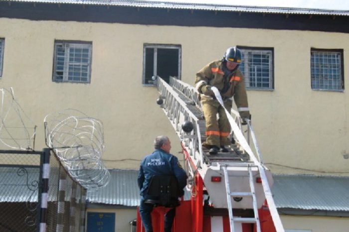 Внеплановая тренировка по тушению условного пожара и эвакуации людей прошла в исправительной колонии ИК-6, расположенной в Соль-Илецке Оренбургской области.