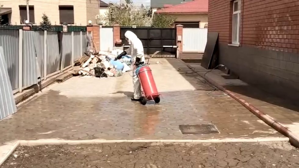 В мэрии отмечают, что санитарная обработка проводится с целью профилактики распространения инфекционных заболеваний в зоне паводка.