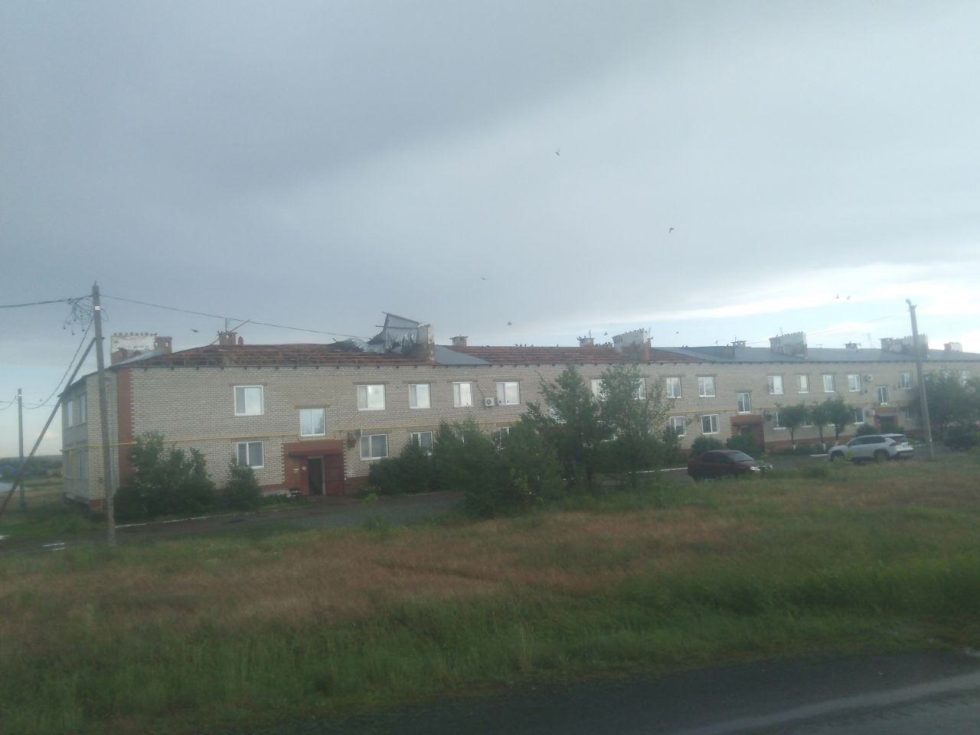 Несколько домов, включая школу остались без кровли в поселке Домбаровский Оренбургской области из-за ураганного ветра.