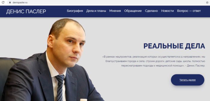 Предвыборный сайт губернатора Оренбургской области Дениса Паслера отключился. Он проработал менее года.