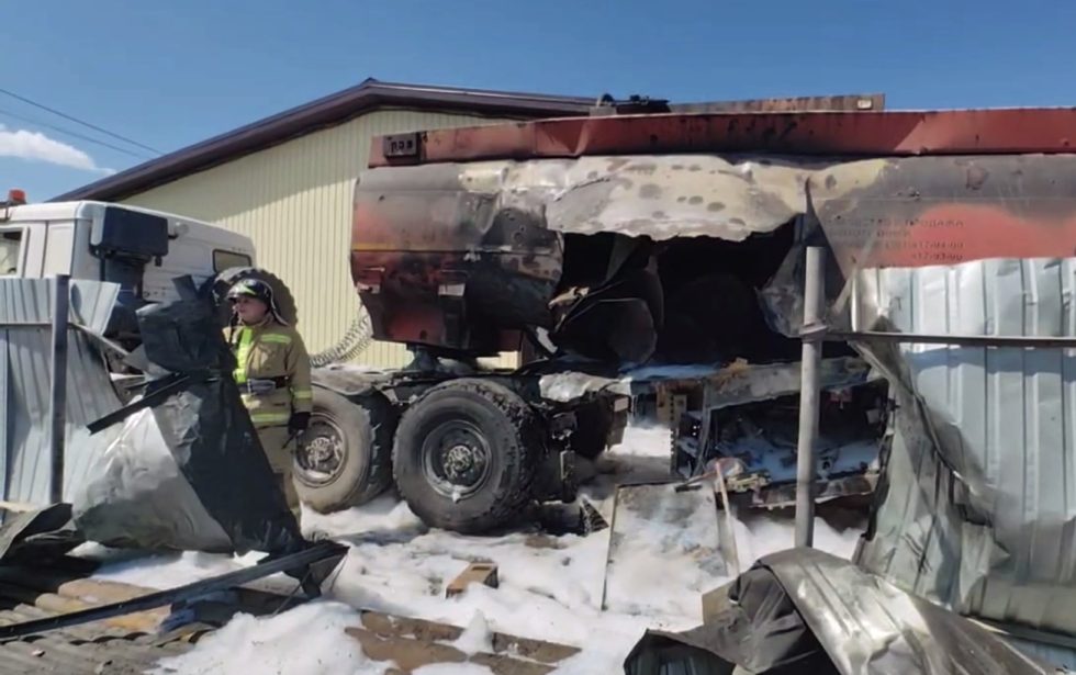 На улице Донгузской в Оренбурге во время сварочных работ загорелся бензовоз. В машине из-за пожара сдетонировали остатки топлива.