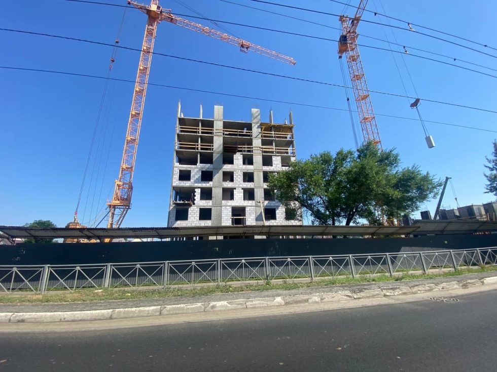 В Оренбурге на проспекте Гагарина около Национальной деревни продолжается строительство жилого комплекса «Европа-Азия». Стройка на месте старых бараков идет уже несколько месяцев.