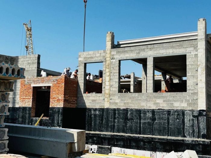Сейчас ведется планировка территории, готовится основание под будущий спортивный стадион. Техника работает без остановки. Полностью перекрыт цокольный этаж, установлены колонны первого этажа. Началась кладка стен. По подвальным помещениям работы на высокой стадии готовности, начали разводку инженерных сетей.