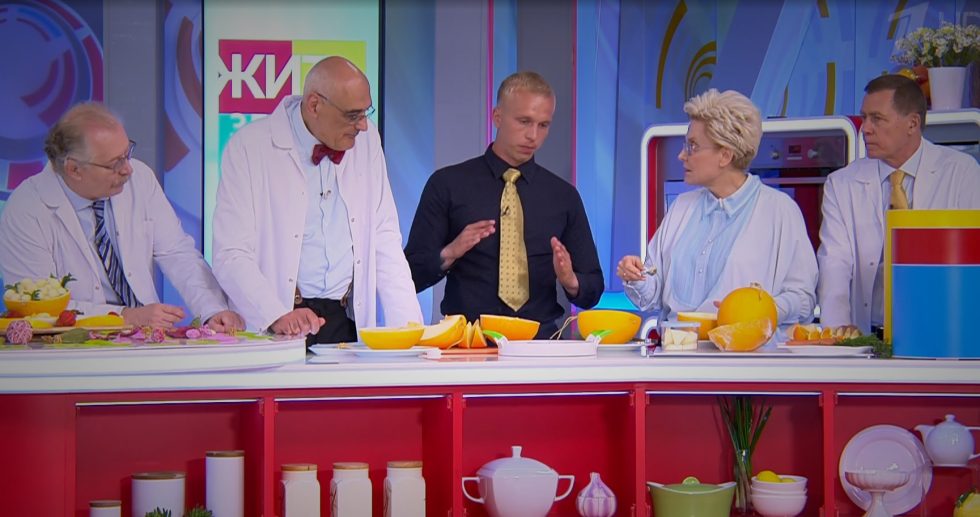 Эфир уже доступен на сайте Первого канала. Помимо дынь там обсуждаются вопросы пилинга, комаров и первой помощи при ушибах и вывихах.