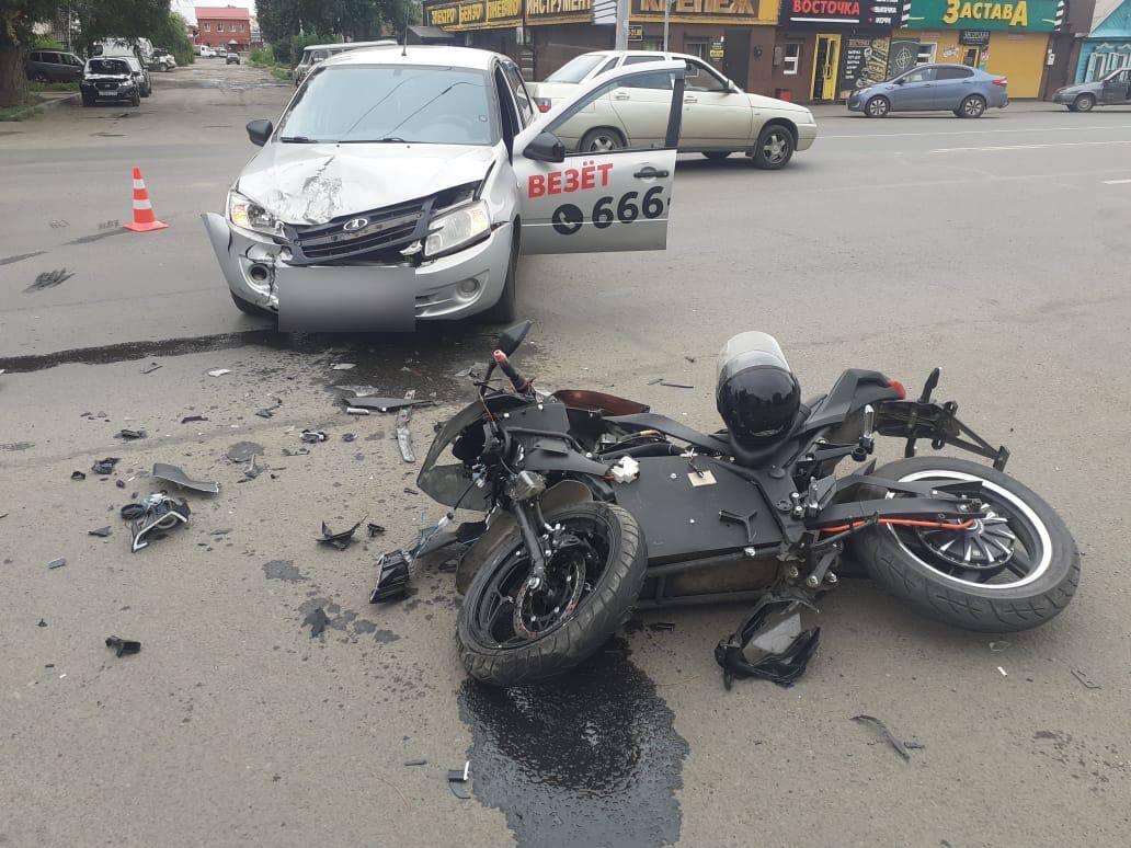 Предварительно установлено, что около 10.30 часов 44-летний водитель такси марки «Лада Гранта» ехал со стороны Цвиллинга в направлении улицы Корецкой. Выполняя поворот налево, он столкнулся с мотоциклом, за рулём которого был 31-летний водитель. Байкер ехал по улице Цвиллинга во встречном направлении прямо.