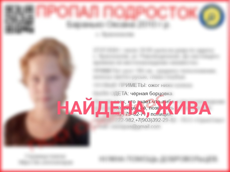 Поисковики просят всех, кто знает что-либо о местонахождении пропавшей, видел её, позвонить по телефонам: 02, +7 (3532) 79-02-71 — полиция, +7(3532) 222-982, +7(903)392-29-82 — ПСО «ОренСпас», e-mail: orenspas@gmail.com.