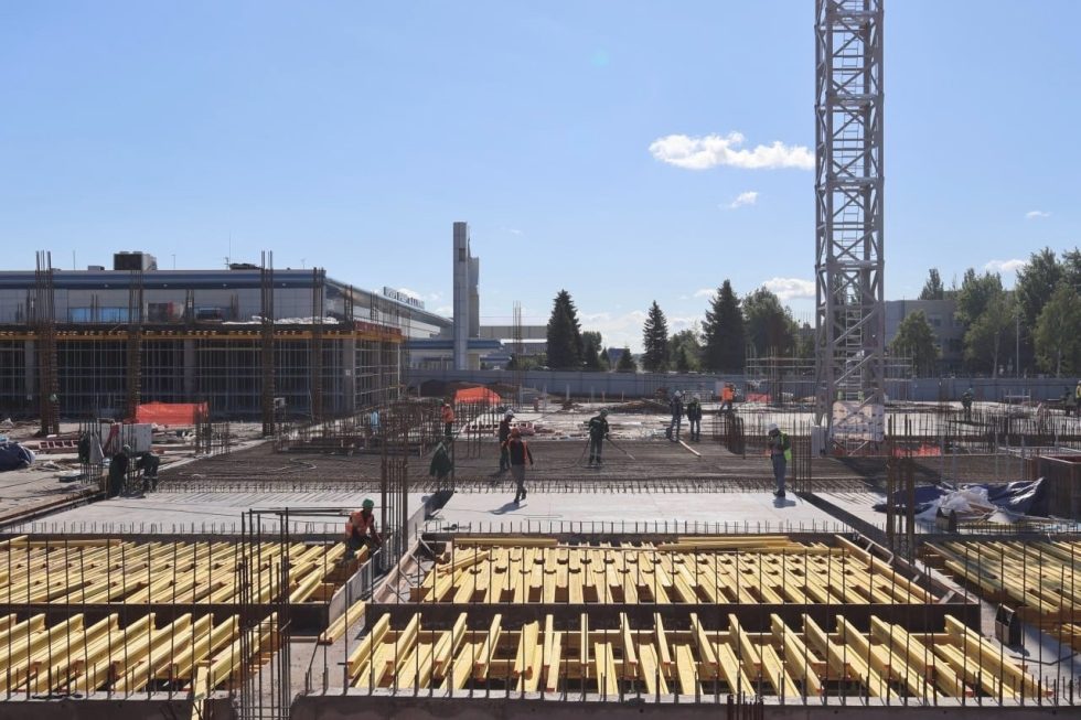 Специалисты приступили к возведению железобетонного каркаса здания аэровокзала на уровне 2 и 3 этажей. Идёт строительство новой котельной и центрального распределительного пункта. Рабочие прокладывают наружные коммуникации. Полным ходом идёт реконструкция административного здания и ремонт грузового комплекса.