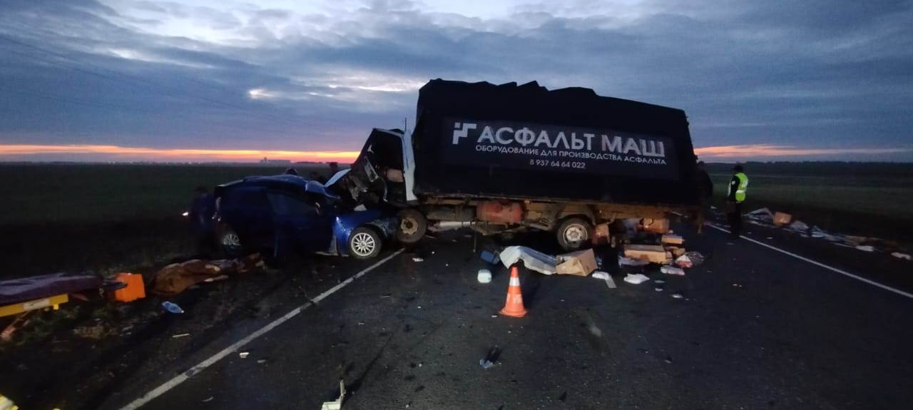 Два человека погибли на месте ДТП. Еще четверо пострадали. На месте работают скорая, полиция и МЧС.