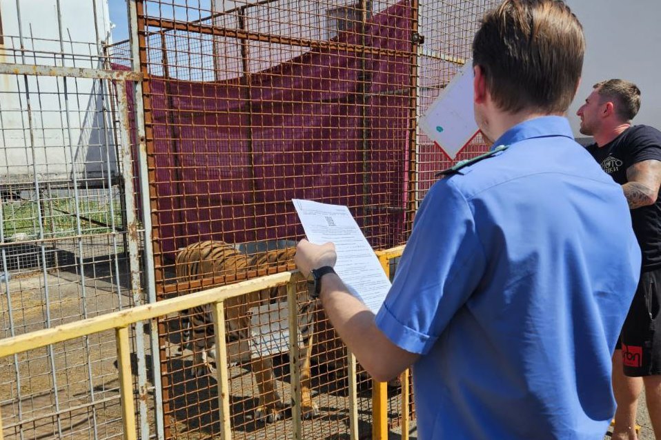 В ходе проверки установлено, что в шоу-программе задействованы львы, тигры, лошадь, кенгуру, дикобраз альбинос, лемур и попугаи. Нарушений требований законодательства в части содержания животных не выявлено.