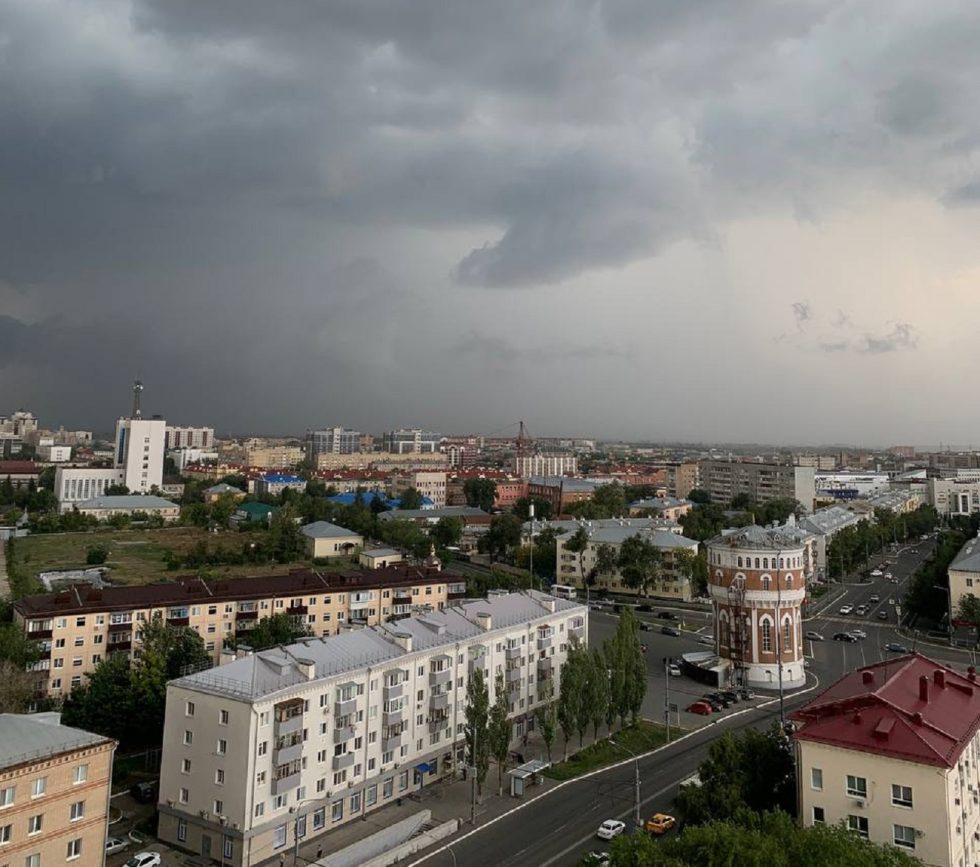 Оренбург сегодня днем накрыло грозой с градом и сильным ветром. Погода испортилась после 16:00.