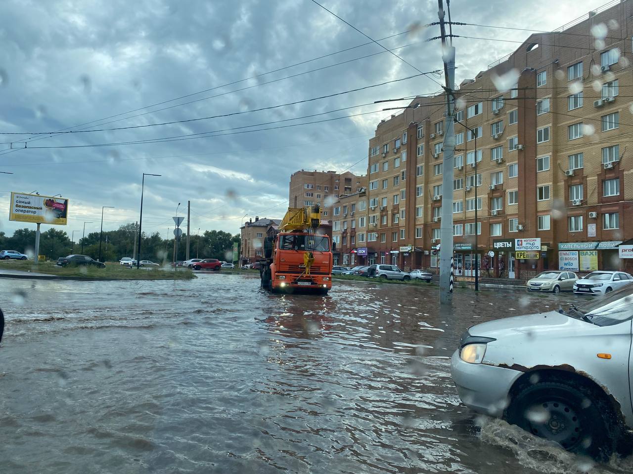 Так, настоящий потоп случился в районе «Риверсайда» у автомобильного моста через Урал настоящий потоп. Вода заполнила стоки и канализацию.