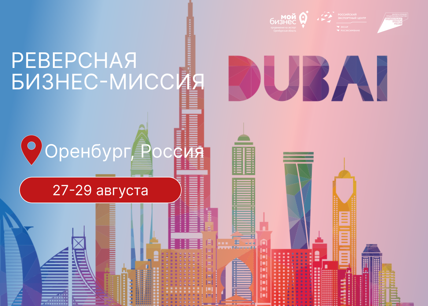Центр поддержки экспорта Оренбургской области в рамках реверсной бизнес-миссии с 27 по 29 августа 2024 года будет принимать предпринимателей из ОАЭ, заинтересованных в приобретении продукции экспортно-ориентированных компаний Оренбуржья.