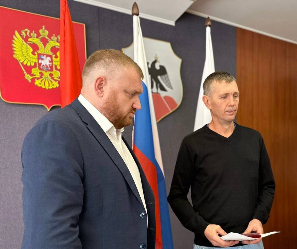 Награду передали в Орске. Орден Мужества отцу Андрея Тищенко отдал врио главы города Артем Воробьев.