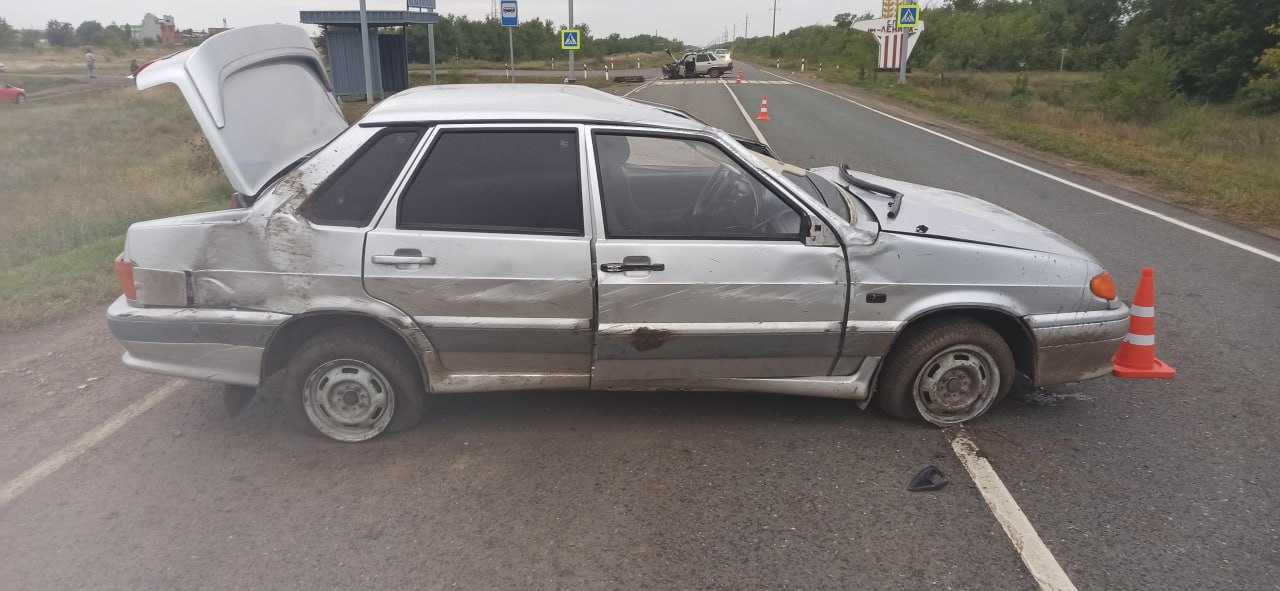 По данным полиции, на участке трассы Оренбург-Беляевка 71-летний водитель за рулем ВАЗ-21099 при повороте налево в село Крючковка не уступил дорогу встречному ВАЗу пятнадцатой модели. От удара автомобили развернуло поперек дороги.