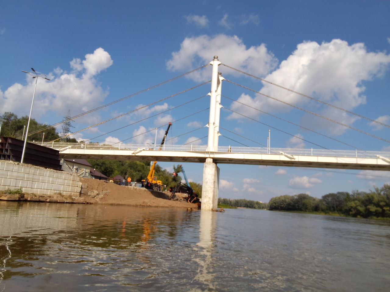 Уровень воды в Урале остаётся достаточно высоким, но технология позволяет погрузить шпунты и в воду и для этого не требуется подготовительных строительных работ и оборудованных площадок.