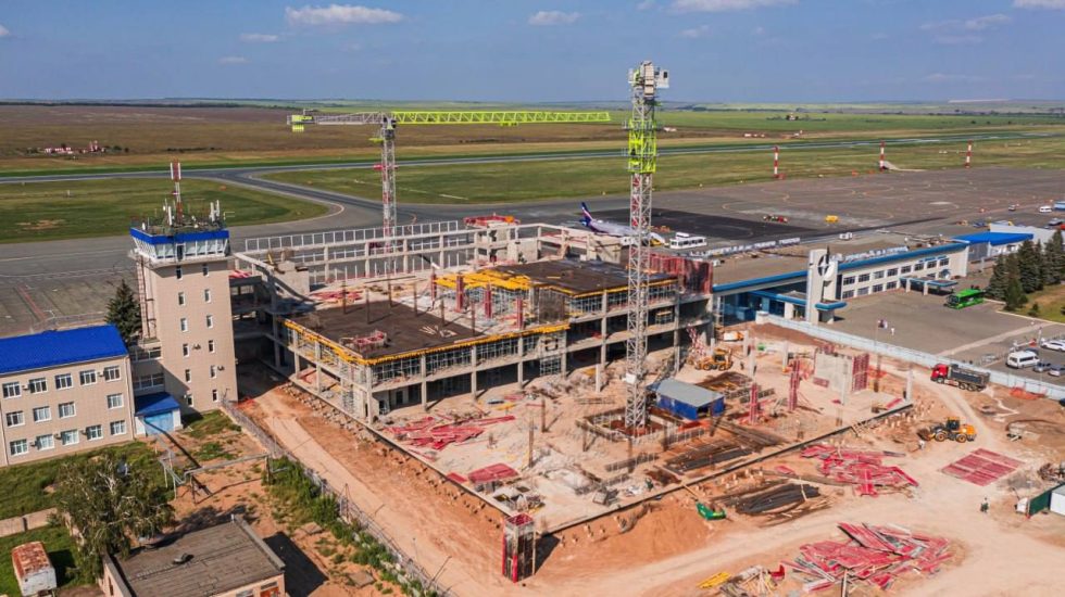 В оренбургском аэропорту продолжается строительство нового пассажирского терминала. Рабочие возводят 3 и 4 этажи здания.