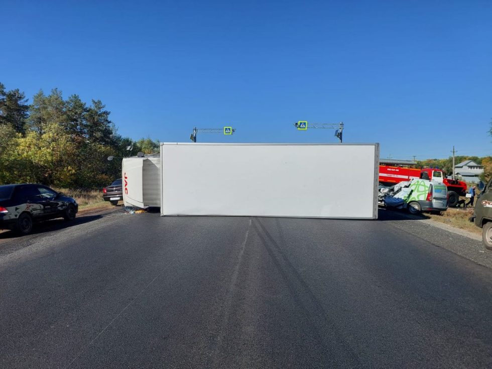 По оперативным данным, утром 17 сентября на 30 километре трассы Оренбург-Орск произошло ДТП с участием четырех автомобилей. В результате транспортные средства получили механические повреждения, а фура опрокинулась поперек дороги, перекрыв движение.
