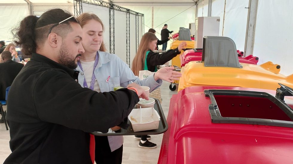 По словам организаторов, молодёжь форума «Евразия Global» выбирает зелёное будущее и чистую планету, поэтому сами активно участвуют в сортировке отходов в столовой.