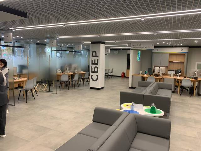 Пространство отделения стало ещё более открытым и комфортным для клиентов: многие услуги теперь доступны в любой локации офиса. Для маленьких посетителей появилась специальная игровая зона. Здесь можно воспользоваться как традиционными банковскими продуктами и услугами, так и разнообразными нефинансовыми сервисами, включая предложения партнёрских компаний Сбера.