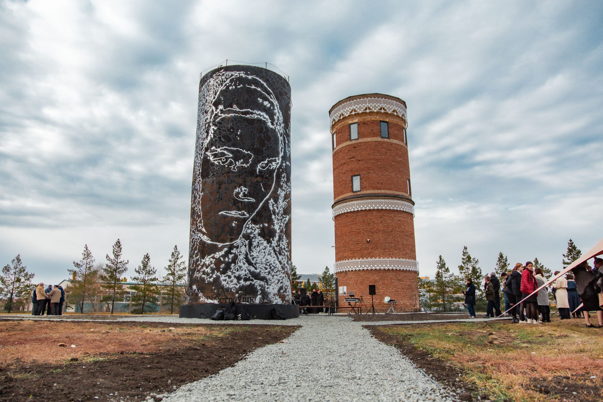 Извлеченный из башни водяной бак стал самостоятельным арт-объектом под открытым небом. Его стены украсил мурал, изображающий мастерицу пуховязания и узнаваемые узоры платка.