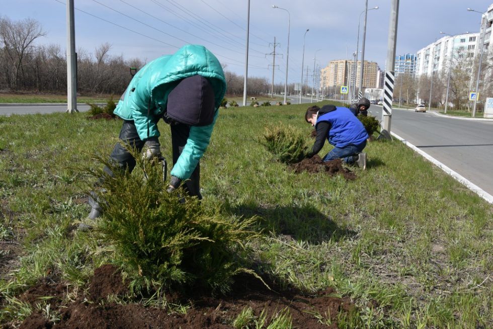 В Оренбурге, несмотря на режим самоизоляции, продолжается благоустройство города. Как и каждый год, в апреле активно озеленяют улицы и парки.