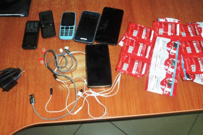 При обыске у него обнаружили шесть свертков обмотанных канцелярским скотчем, в которых находилось 12 мобильных телефонов, комплектующие к мобильным телефонам, сим-карты и дрожжи.