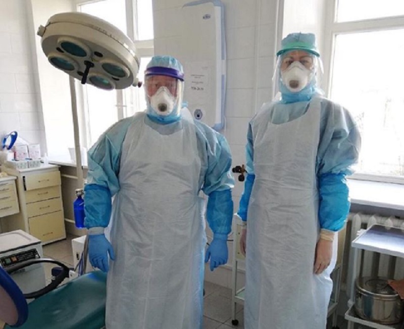 В силу специфики приема врач не может изолировать рот больного защитной маской. В клинике выделена отдельная бригада для пациентов с подозрением на ОРВИ и с повышенной температурой. Медики работают в специальных защитных костюмах.
