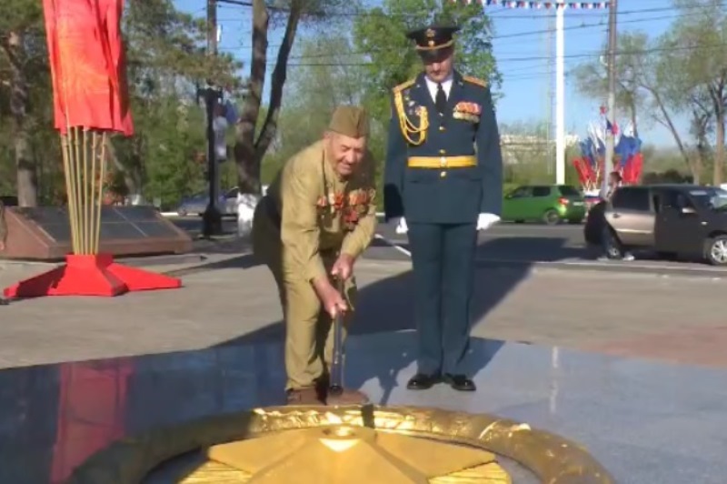 Так, сегодня, 8 мая, на проспекте Победы вновь вспыхнул Вечный огонь. Церемония зажжения прошла в торжественной обстановке со всеми необходимыми почестями. Право зажечь факел предоставили ветерану Великой Отечественной войны Ивану Шевченко.