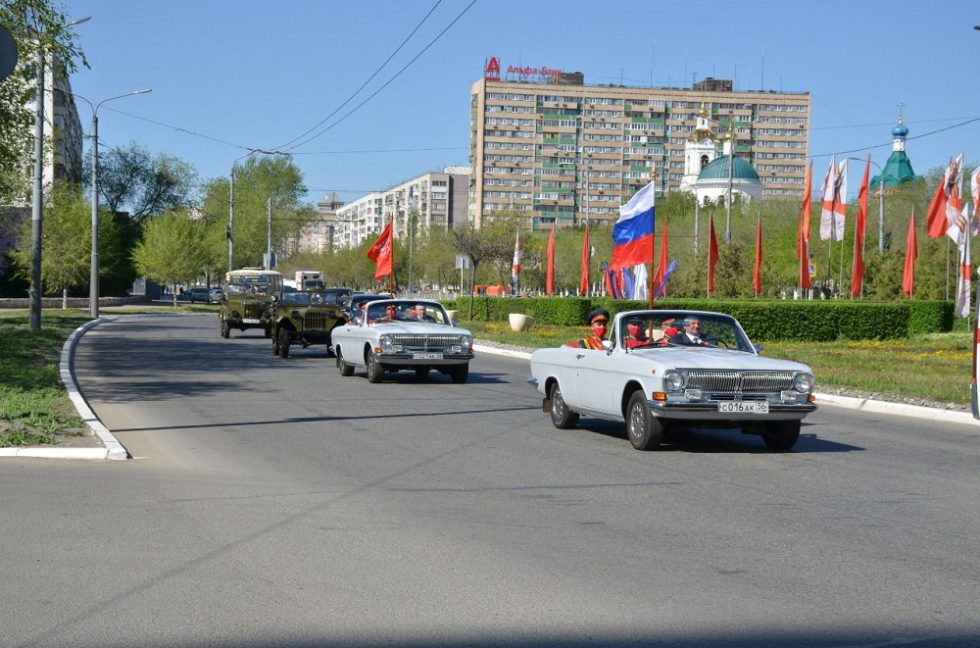 Сегодня утром по Оренбургу едет автоколонна ретроавтомобилей со знамённой группой: государственным флагом РФ и знаменем Победы. Старт автопробегу был дан у Дома Советов. Затем колонна проедет по основным улицам областного центра. Длина маршрута составляет более 37 км.