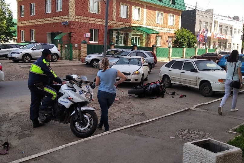 Водитель «Лады» начал поворот налево в парковочный карман, когда произошло столкновение. Байкер перелетел через автомобиль, затем поднялся и подошел к водителю «Приоры». В этот момент к месту ДТП подоспел сотрудники полиции на мотоцикле, он ехал, также как и байкер, против движения.