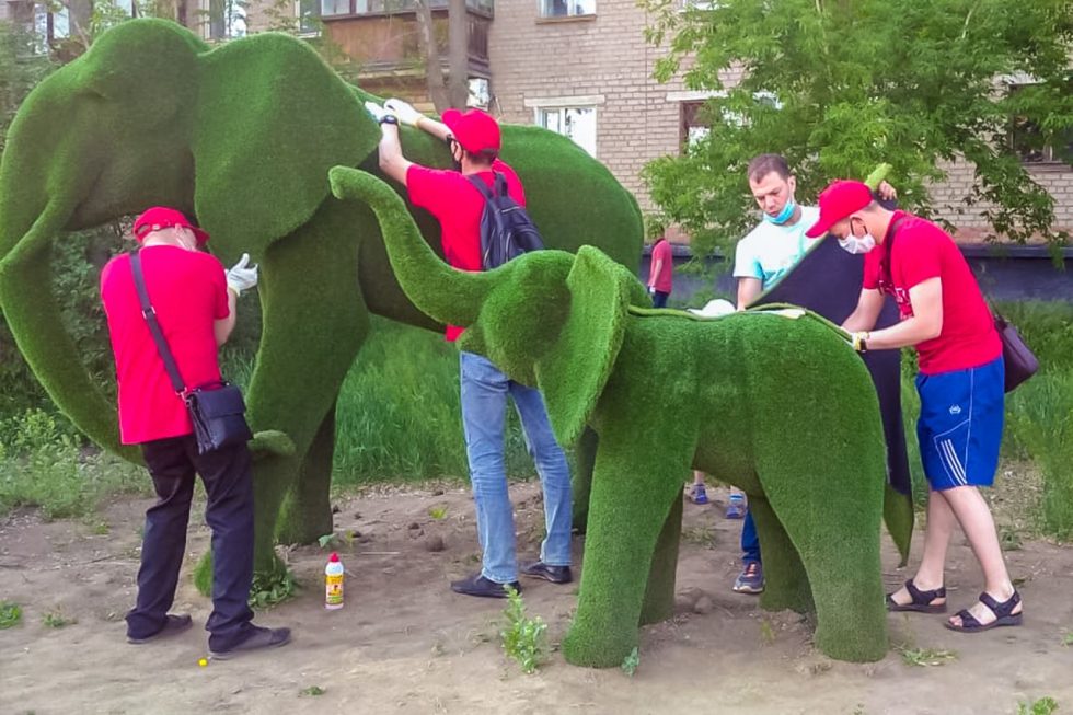 Увидев информацию о порче объектов в СМИ, активисты выехали на место. В рамках активно развивающегося на Уральской Стали направления Эковолонтёрства «Откликнись!», было решено отремонтировать топиарные фигуры.
