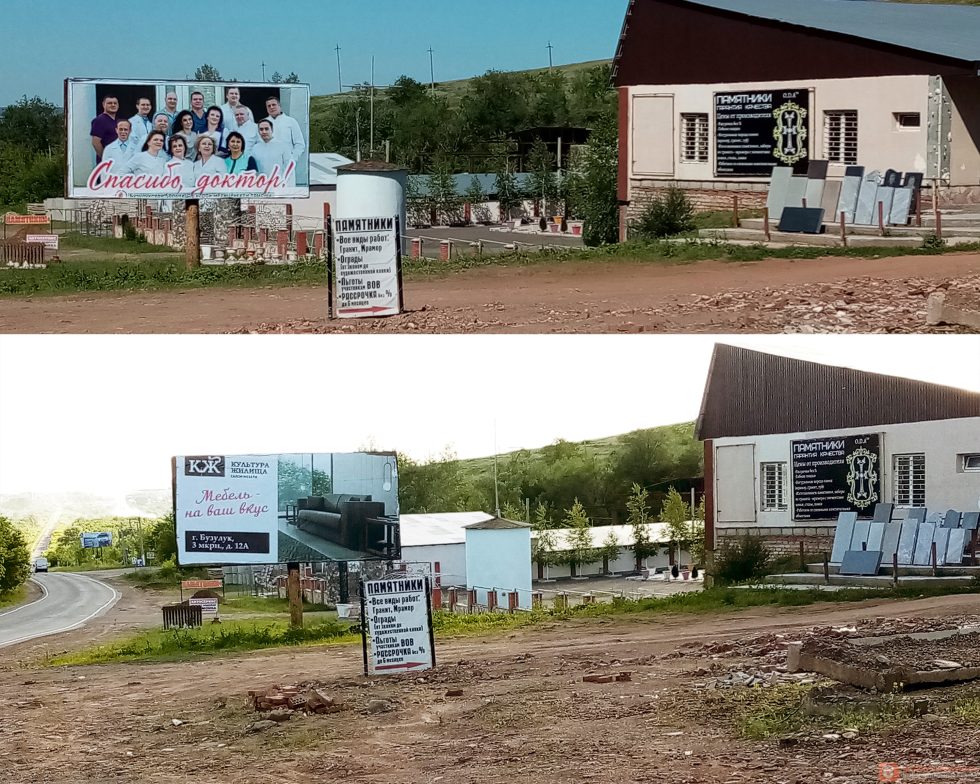 В Оренбургской области на территории Бузулука сняли баннер «Спасибо, доктор», который висел возле кладбища. Об этом сообщает сайт «Бузулук Информ».