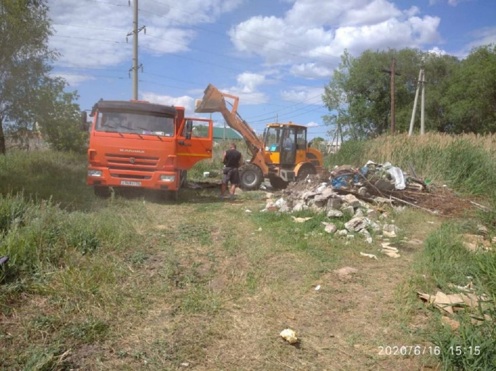 От завалов мусора поселок Гудрон расчищают по инициативе администрации Советского района. На месте работают КАМАЗ и погрузчик МУП «САТУ».