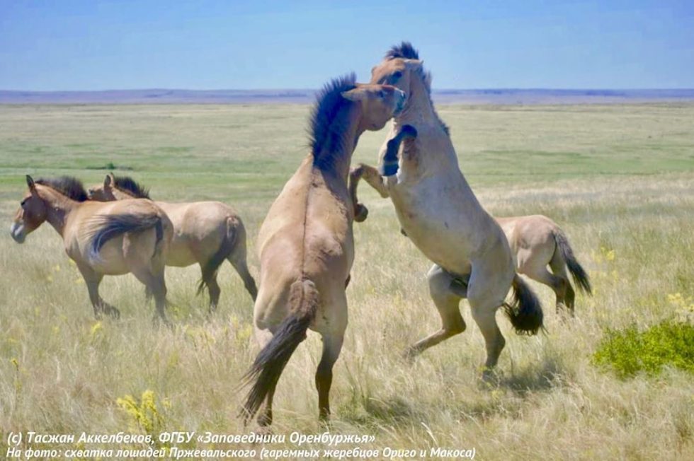 Главная > Медиа > В «Оренбургском заповеднике» запечатлели на фото столкновение жеребцов Пржевальского