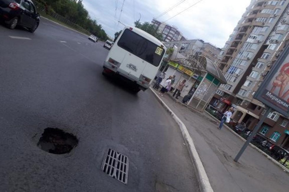 О провале асфальтового покрытия на проезжей части сообщают очевидцы. Яму заметили в районе остановки «Парковская» по улице Чкалова.