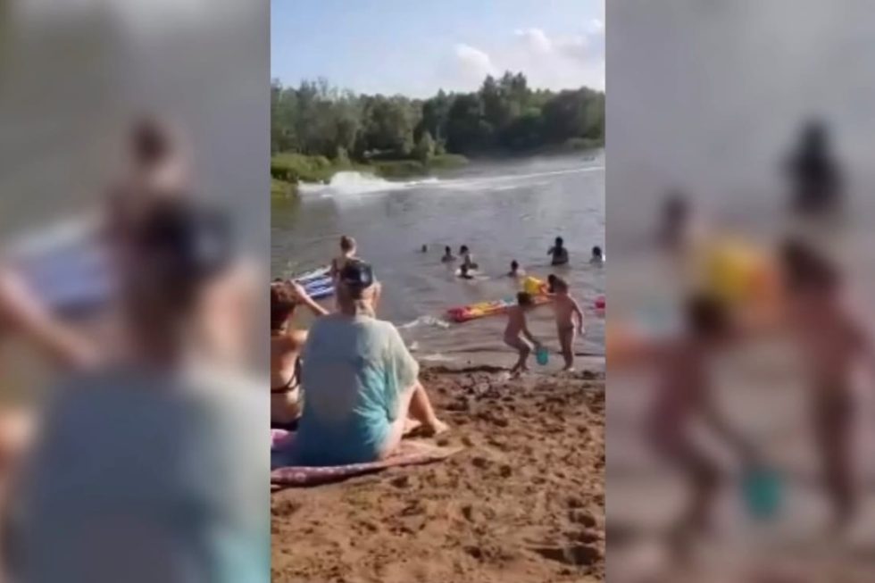 На кадрах видно, как гидроцикл на полной скорости мчится к берегу. В околобереговой зоне в воде находятся десятки людей. В какой-то момент водитель водного скутера въезжает в группу людей, позже транспортное средство переворачивается рядом с берегом.
