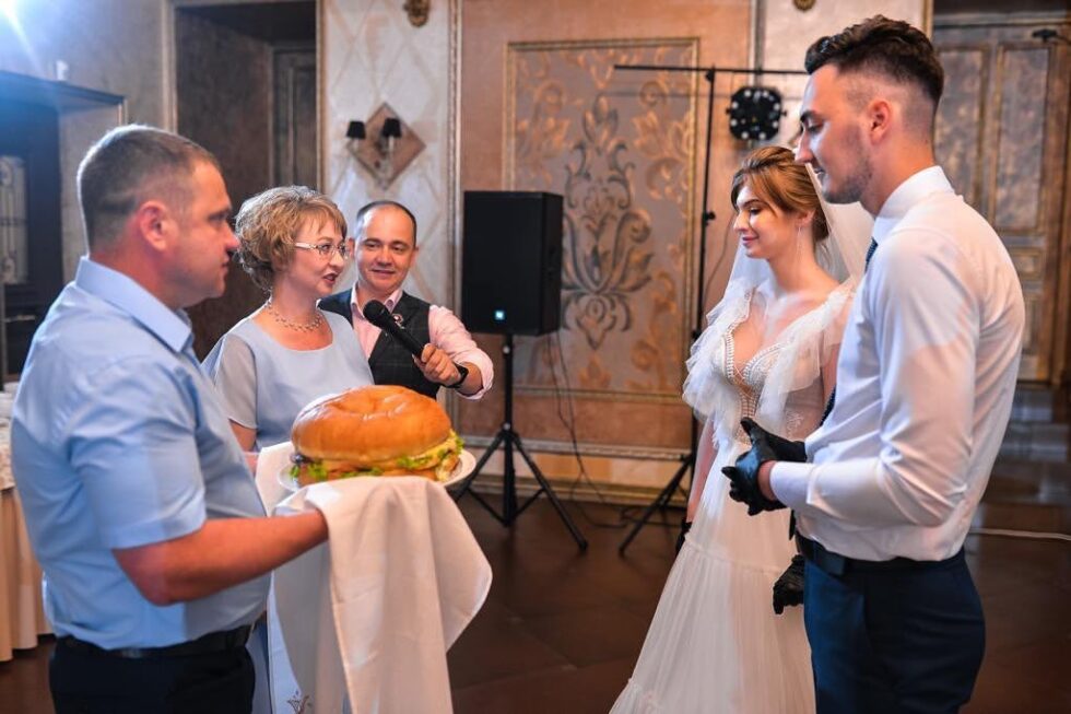 В Оренбурге придумали альтернативу свадебному караваю — вместо традиционных хлеба и соли молодых встретили бургером-великаном весом 3,5 килограмма. Интересное нововведение предложил шеф-повар кафе Choppers.