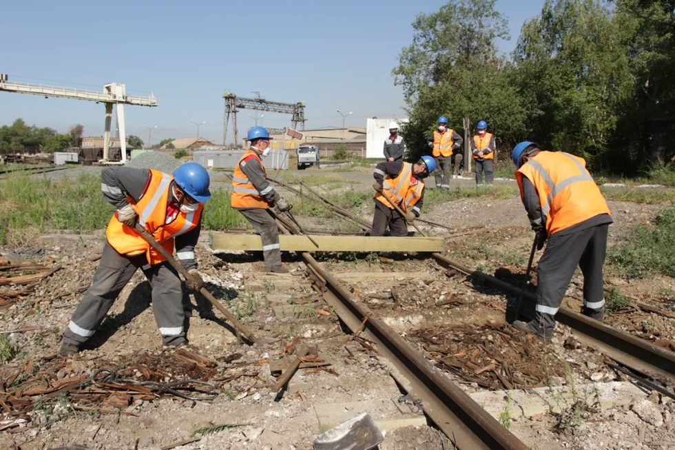На Уральской Стали марафон профмастерства «золотой» сотни профессионалов открыли монтеры пути управления железнодорожного транспорта. Из 40 претендентов к соревнованиям допущены 10. Практический этап – командный: конкурсанты звеньями по двое на время меняют шпалу за отведенные 40 минут.