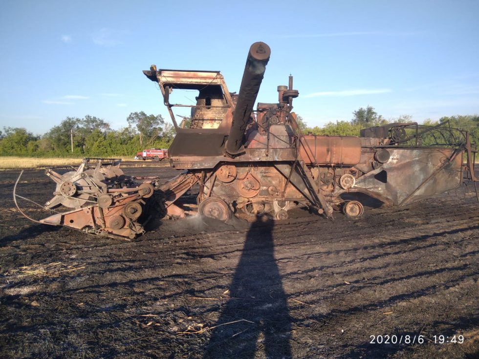 Ранее стало известно, что в поле неподалеку от Нежинки загорелись комбайн и сухая трава.