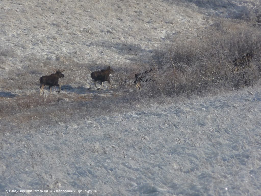 Старший госинспектор Алексей Каширский сообщил о стае из пяти волков, которые не уходят с участка. Из-за этого большинство копытных затаились. В осиннике в верховьях балок Ташкак и Жарык замечены следы лосей, лакомившихся древесной корой.